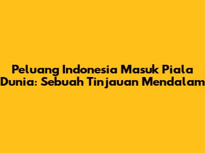 Guys, mari kita bicara tentang mimpi yang membara di hati setiap pecinta sepak bola Indonesia: peluang Indonesia masuk Piala Dunia. Sebuah impian yang tak lekang oleh waktu, selalu menjadi bahan perbincangan hangat di warung kopi, di media sosial, bahkan di bangku sekolah. Pertanyaannya, seberapa besar sih sebenarnya peluang Indonesia lolos ke Piala Dunia? Apakah ini hanya angan-angan kosong, ataukah ada harapan nyata yang bisa kita genggam?