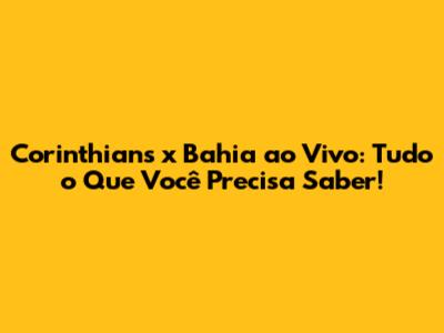 E aÃ, fiel torcida e amantes do futebol! Preparem a pipoca, porque o jogo entre Corinthians e Bahia está prestes a começar! Se você está se perguntando onde assistir ao vivo e não perder nenhum lance, chegou ao lugar certo. Neste guia completo, vamos te dar todas as informações sobre a partida, desde os horários e canais de transmissão até as prováveis escalações e o que esperar desse jogão. Então, fique ligado e não perca nada!
