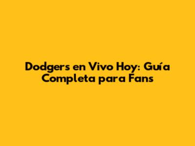 Dodgers En Vivo Hoy: Guía Completa Para Fans