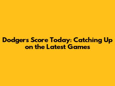 Dodgers Score Today: Catching Up On The Latest Games