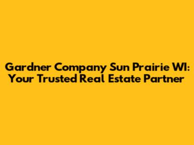 Hey there, real estate enthusiasts! Let's dive into the world of Gardner Company in Sun Prairie, Wisconsin. If you're looking to buy, sell, or invest in property, you've probably heard the name Gardner Company thrown around. They're a big player in the local real estate scene, and for good reason! This article is all about giving you the lowdown on who they are, what they do, and why they might just be the perfect partner for your real estate journey in Sun Prairie. So, buckle up, grab a coffee (or your beverage of choice), and let's get started!