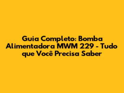 Guia Completo: Bomba Alimentadora MWM 229 - Tudo Que Você Precisa Saber