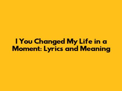 I You Changed My Life In A Moment: Lyrics And Meaning