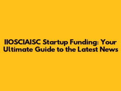IIOSCIAISC Startup Funding: Breaking News & Insights