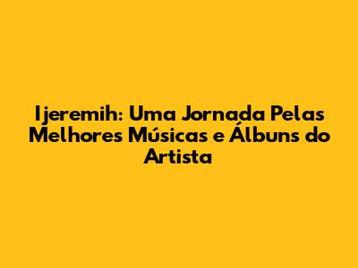 As Melhores Músicas de Ijeremih: Um Passeio pelos Sucessos