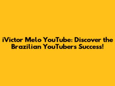 IVictor Melo: Discover The Brazilian YouTuber's Success!