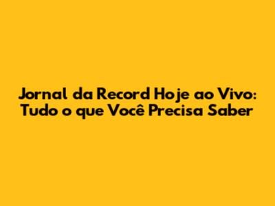 O que Esperar da Cobertura do Jornal da Record Hoje