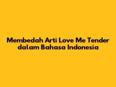 Membedah Arti 'Love Me Tender' Dalam Bahasa Indonesia