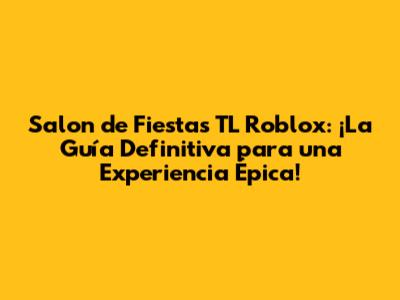 Salon De Fiestas TL Roblox: Tu Guía Completa