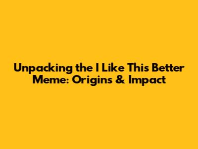 Unpacking The 'I Like This Better' Meme: Origins & Impact