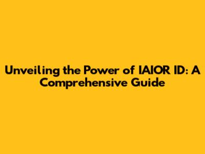 Unveiling The Power Of IAIOR ID: A Comprehensive Guide